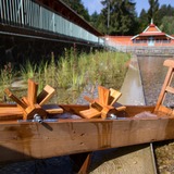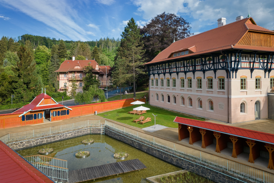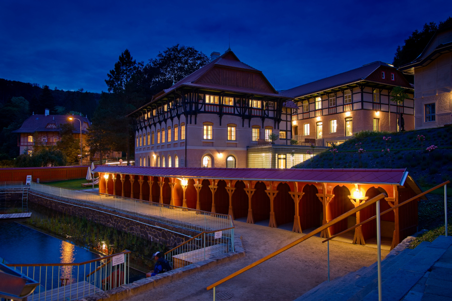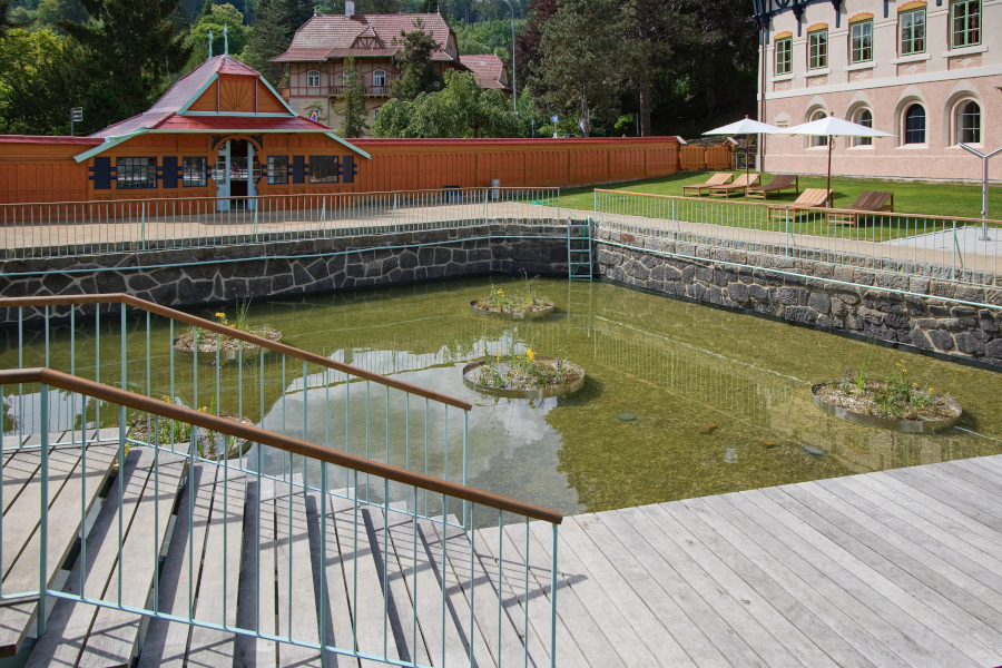 Im Jahr 1903 errichtete Jurkovič in unmittelbarer Nähe des Wasserheilinstituts die Fluss- und Sonnenbäder, die zu ihrer Zeit ein Mittelpunkt des gesellschaftlichen Lebens und der Unterhaltung für Kurgäste darstellten. Das Becken, gespeist vom Flüsschen Šťávnica, war von hölzernen Umkleidekabinen mit weißen Vorhängen gesäumt. In dem renommierten Freibad fanden verschiedenste Sportwettkämpfe statt, darunter Schwimmwettkämpfe, Tischtennis, Gymnastik und Ballonfahren.