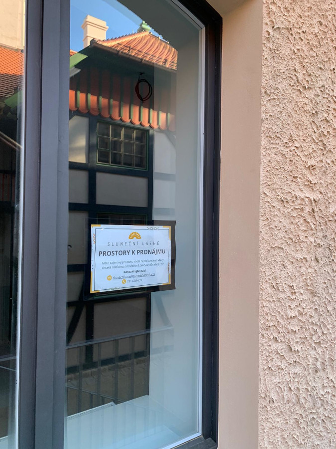Wir bieten zur Miete den letzten verfügbaren Verkaufsraum in den neu renovierten Sluneční Lázně an, im Gebäude mit dem Hauptempfang und dem Museumseingang.